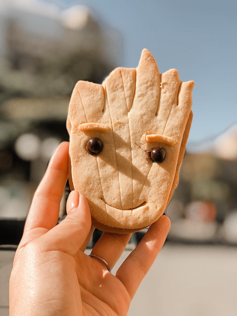 Then the girls headed to Rock'n'Rollercoaster but after my traumatic experience last time (no thanks to my loving fiance) I thought I'd skip that one. Just kidding, I'm being dramatic because it was too fast and loopy the last time I went on which I was not told about beforehand (cough Josh cough) and I just wasn't feeling it that time in the morning. But it was all ok because I went and got GROOT BREAD instead. Okay, it was actually a nutella stuffed Groot Cookie because the bread had sold out but it was probably the best thing I ate all day and I only felt a little guilty about eating the cutest Marvel character of all time.